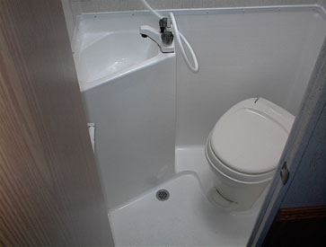 Shower Stall w/Curtain, Marine Toilet, Vanity